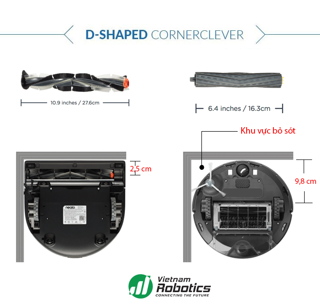 Neato Botvac D5 945-0228 tiếp cận sát và làm sạch các góc, chân tường tốt hơn, kích thước chổi lớn hơn, Neato làm sạch nhanh hơn gấp 4 lần so với các robot hình tròn khác.