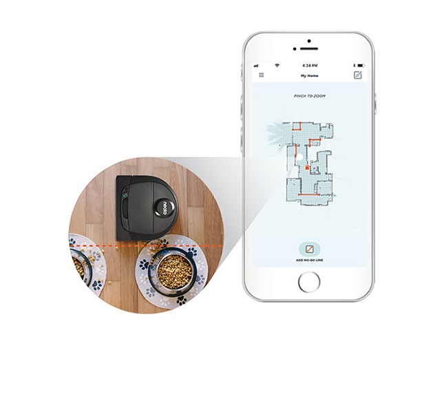 Với đường ranh giới ảo NO-Go Line bạn sẽ cho robot của bạn biết nơi mà nó không đi vào, đường ranh giới ảo này bạn dễ dàng thiết lập trên bản đồ ngôi ngà của bạn trên Neato app.